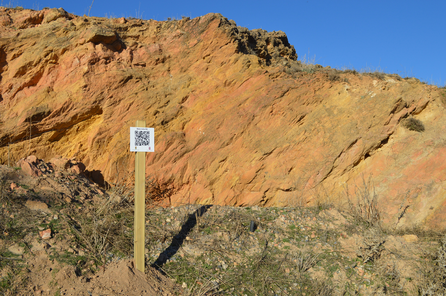 A continuación, debes continuar por el camino que asciende junto a la explotación, subiendo hasta el punto más alto y realizar allí la tercera parada; posteriormente, volverás a descender por el camino para parar junto al panel de información.